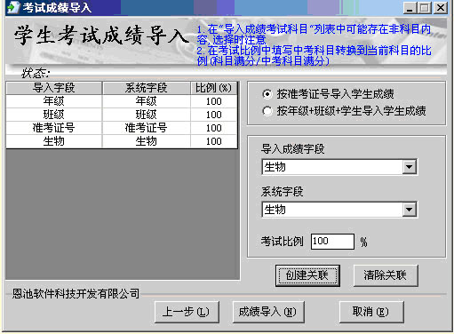 (學生成績導入界面2)