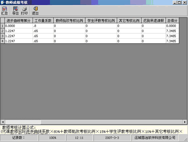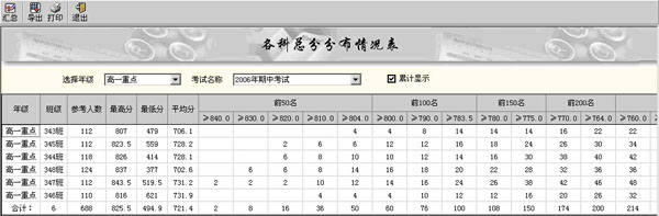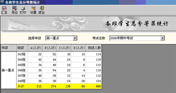 (總分等第統(tǒng)計界面)